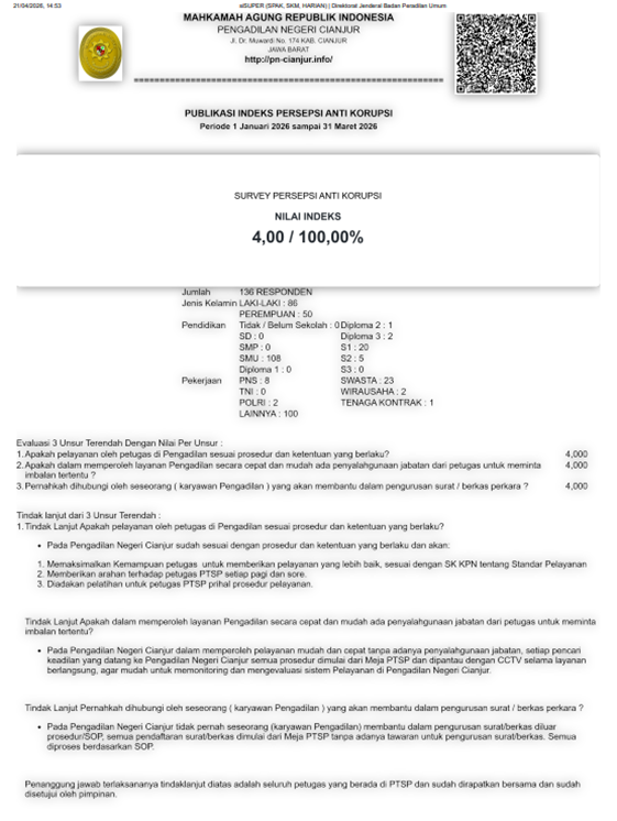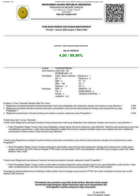 Pelayanan Terpadu Satu Pintu (PTSP) merupakan bagian integral dari pelayanan prima yang diberikan oleh PN Cianjur kepada para pencari keadilan.